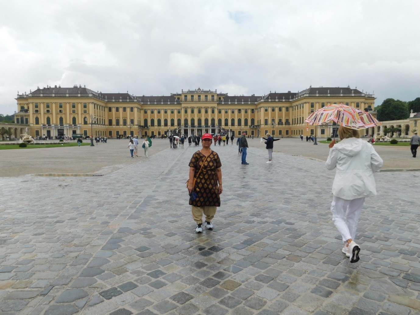 After breakfast, by 9:30 we left the hotel and proceeded to Schonbrunn Palace. The total number of rooms in that palace is 1,400. Only 45 rooms are kept open for visitors. In this palace, they won't allow bags or umbrellas. Only small bags of A4 size are allowed. While entering, they provide a microphone device, and when you press the room number, a recorded description of the things kept in that place is narrated. Schonbrunn is a royal family having a large number of family members. This palace belongs to the 16th century and was the summer palace of the Habsburg rulers of Austria. Beautiful wall paintings, royally decorated furniture, portraits of royal family members, silver vessels, etc., are seen in this palace. Now it is a UNESCO World Heritage site.