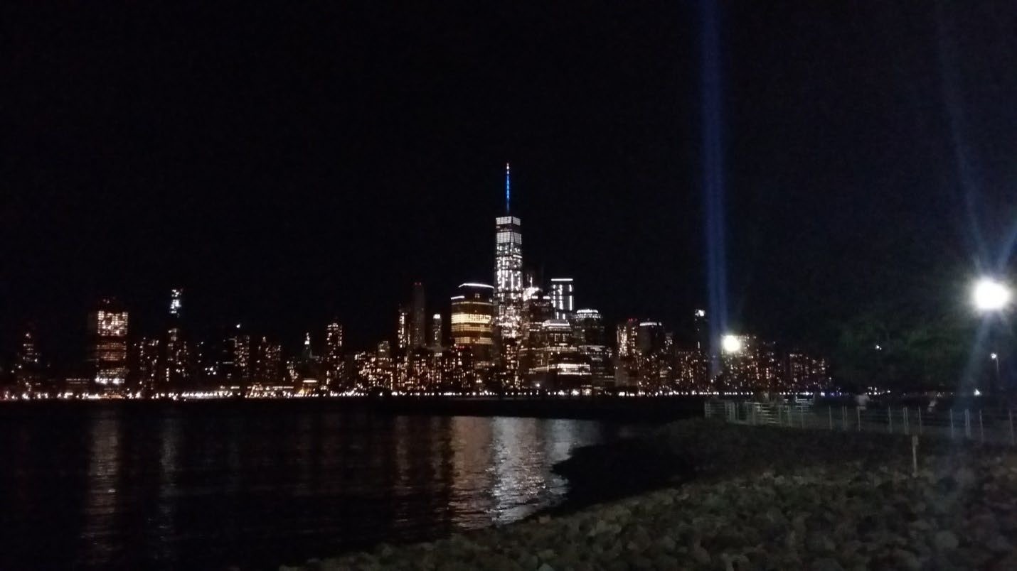 In the morning, we started early to see the White House. It was a bright day and the weather was good. After seeing the White House, we proceeded to New Jersey to visit Sruthi and Ashvin. We reached their home around 6 pm. Sruthi prepared dinner—bisibelebath with raitha. Nobody in America forgets the disaster of 11th September 2001. Every year on that day, people remember the victims. Special lighting arrangements are made, and two beams of light are projected into the sky, believed to show the path to Heaven for the victims. From their house, we went to see these lighting arrangements from the New Jersey side.