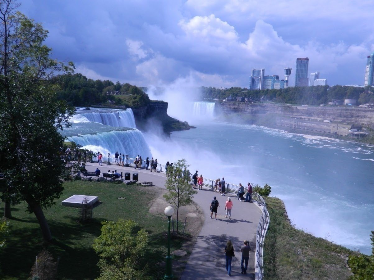On 18/09/16, we left the hotel around 10:30 am after breakfast. We reached the falls and boarded the cruise. There are three waterfalls here—two in Canada and one in the US. Before boarding, they gave us raincoats. We went to the top deck and were taken so close to the falls that we were almost fully drenched. It was terrific to see the huge falls. After the 20-minute cruise, we spent more time there and Revathy bought some souvenirs. We started our return journey by noon, stopping at Seneca Lake—one of the eleven Finger Lakes.