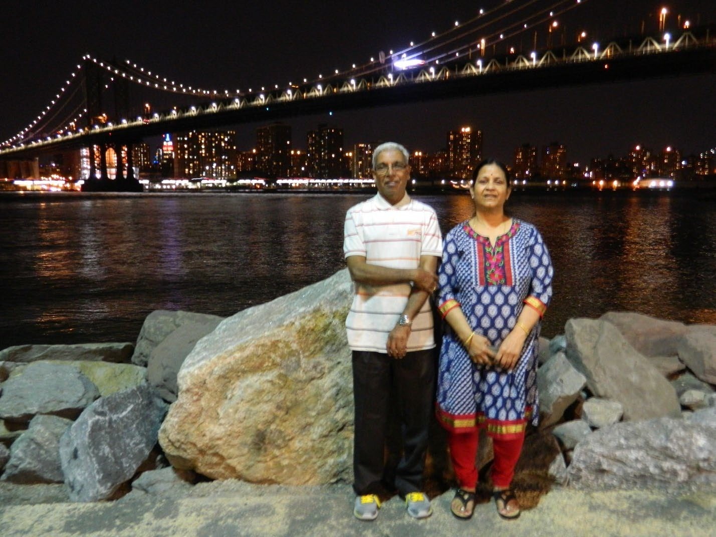 Since there was no sign of rain or storm as predicted by weather reports, Pavan suggested a New York trip. Actually, we left home late in the evening around 7:30. It is an hour's drive from their home. New York City is colorful. We saw the Brooklyn Bridge, Manhattan Bridge, World Trade Center, and Empire State Building; they are all decorated with colorful lights. We were roaming around the East River bed. From the river bed, we also could see the Statue of Liberty, which is quite far away from that place.