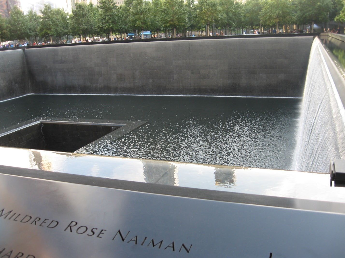 After finishing lunch, we walked to ‘One World Trade Center’. The ticket cost for each person was $36. There was a security check; they thoroughly checked all the bags we carried. This building is considered one of the tallest buildings in the USA, with one hundred floors. The top floor is the ‘One World Observatory’. The lift goes very fast, taking less than a minute. From the 100th floor, one can see the whole of New York! The East River, Hudson River, bridges over the Hudson and East Rivers, Manhattan, the Statue of Liberty, Governor’s Island, and the Empire State Building are all visible. The Hudson River is between New York and New Jersey. From Grand Central, there are trains to New Jersey that go through a tunnel under the Hudson River. After the visit to the World Trade Center, we saw the 9/11 Memorial—a square place with fountains where the names of victims of the disaster are engraved. Some Indian names are also there.